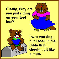 Watch ye, stand fast in the faith, quit you like men, be strong. In the Bible quit you like men does not mean to quit. It means to conduct yourselves, or act, as men. We are to be watchful. We are to stand fast on God's Word. We are to act as men. We are to be strong. |